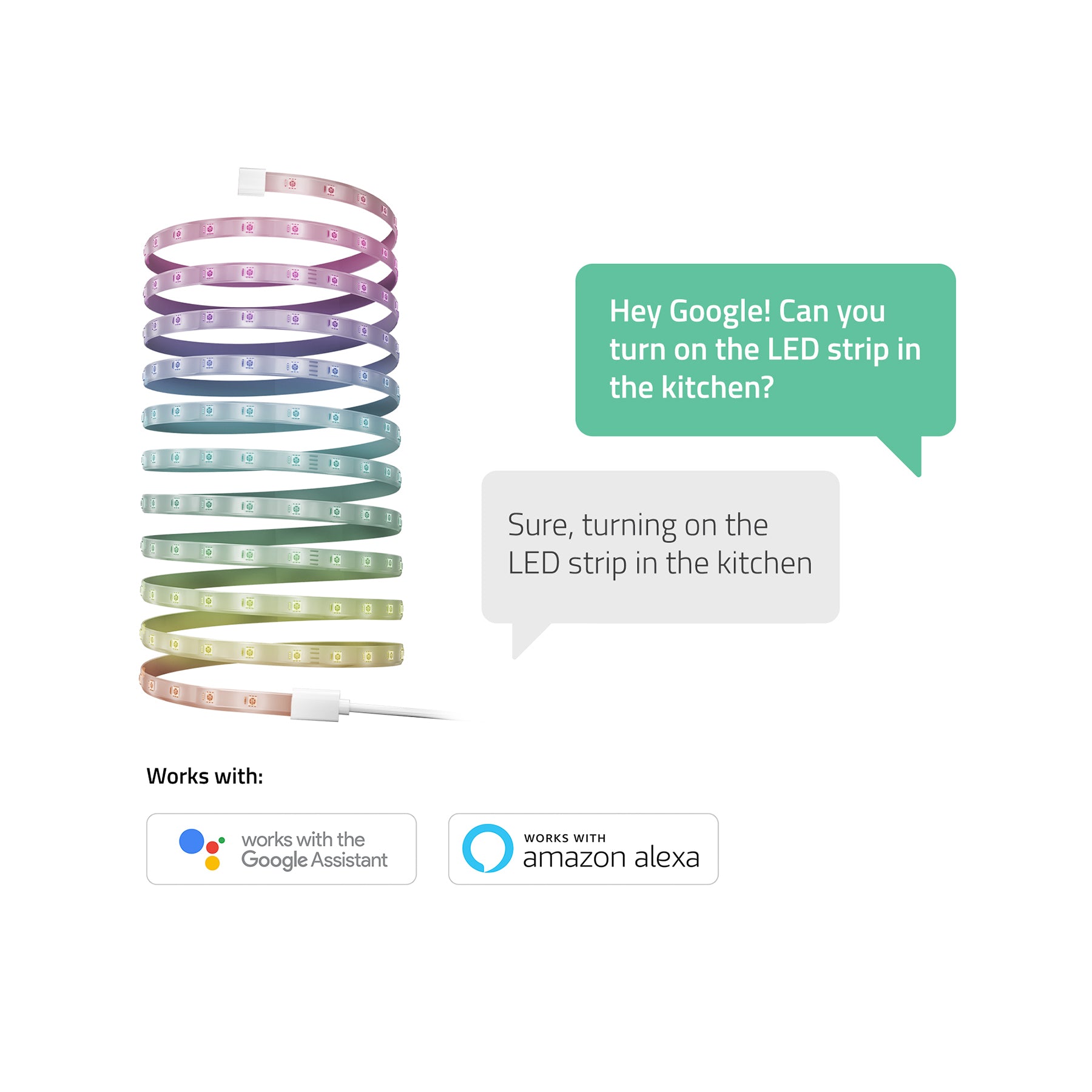 Vous avez les mains pleines pendant un moment ? Demandez à l'assistant Google, à Siri ou à Alexa de contrôler vos lumières ! Associez la rampe de LED à des haut-parleurs intelligents tels que Google Home (Mini) et Amazon Echo pour une commande vocale mains libres.
