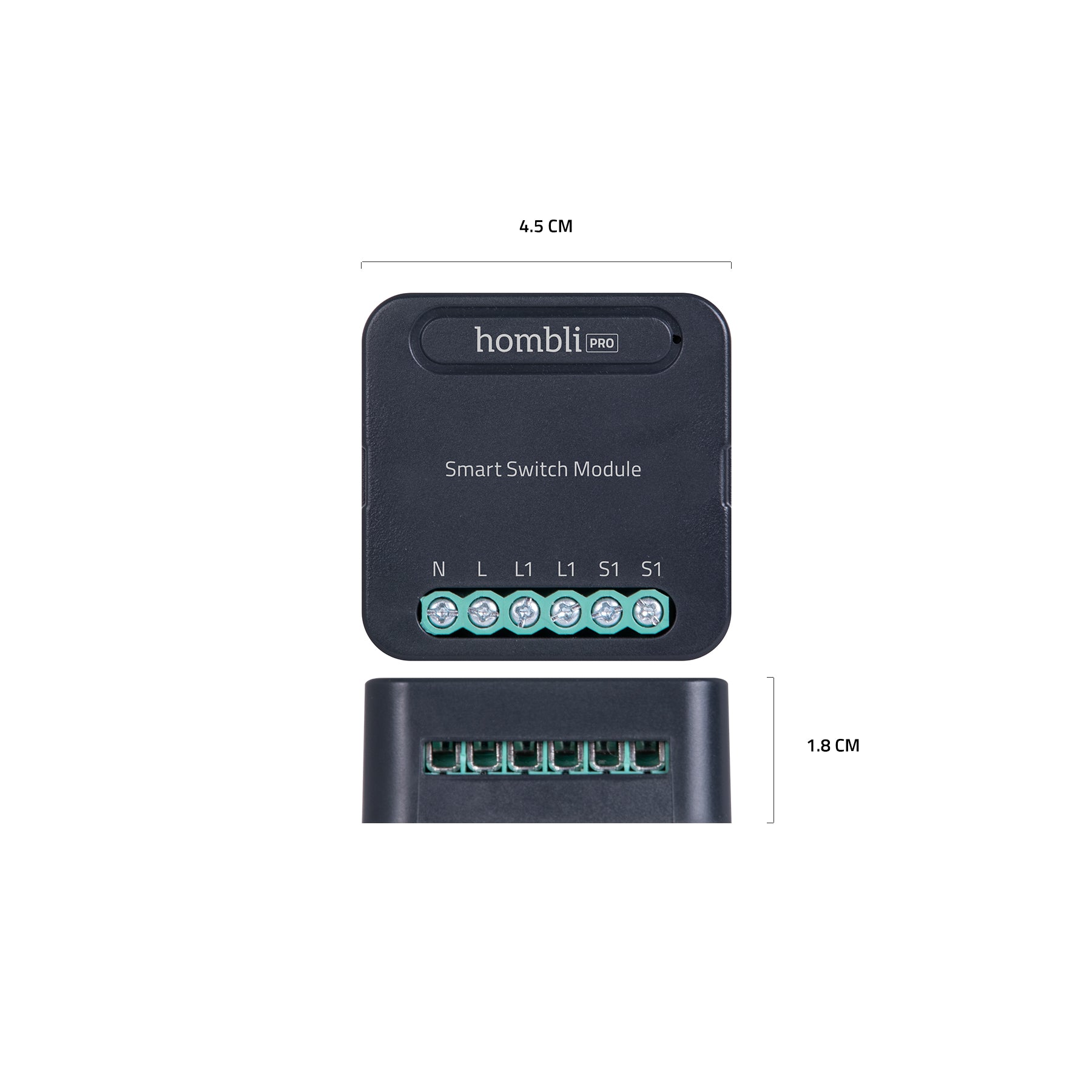 Le module Hombli Smart Switch a un design compact, ce qui permet de l’installer derrière la plupart des interrupteurs muraux traditionnels à bascule ou à bouton et des prises. Au lieu de l’installer derrière un interrupteur ou une prise, il est également possible d’installer Smart Switch dans la boîte de jonction près du luminaire. Gardez à l’esprit que la boîte de jonction a besoin d’un fil neutre et d’un fil sous tension en plus du fil de signal/interrupteur, car le module d’interrupteur a toujours besoin d’électricité pour fonctionner.