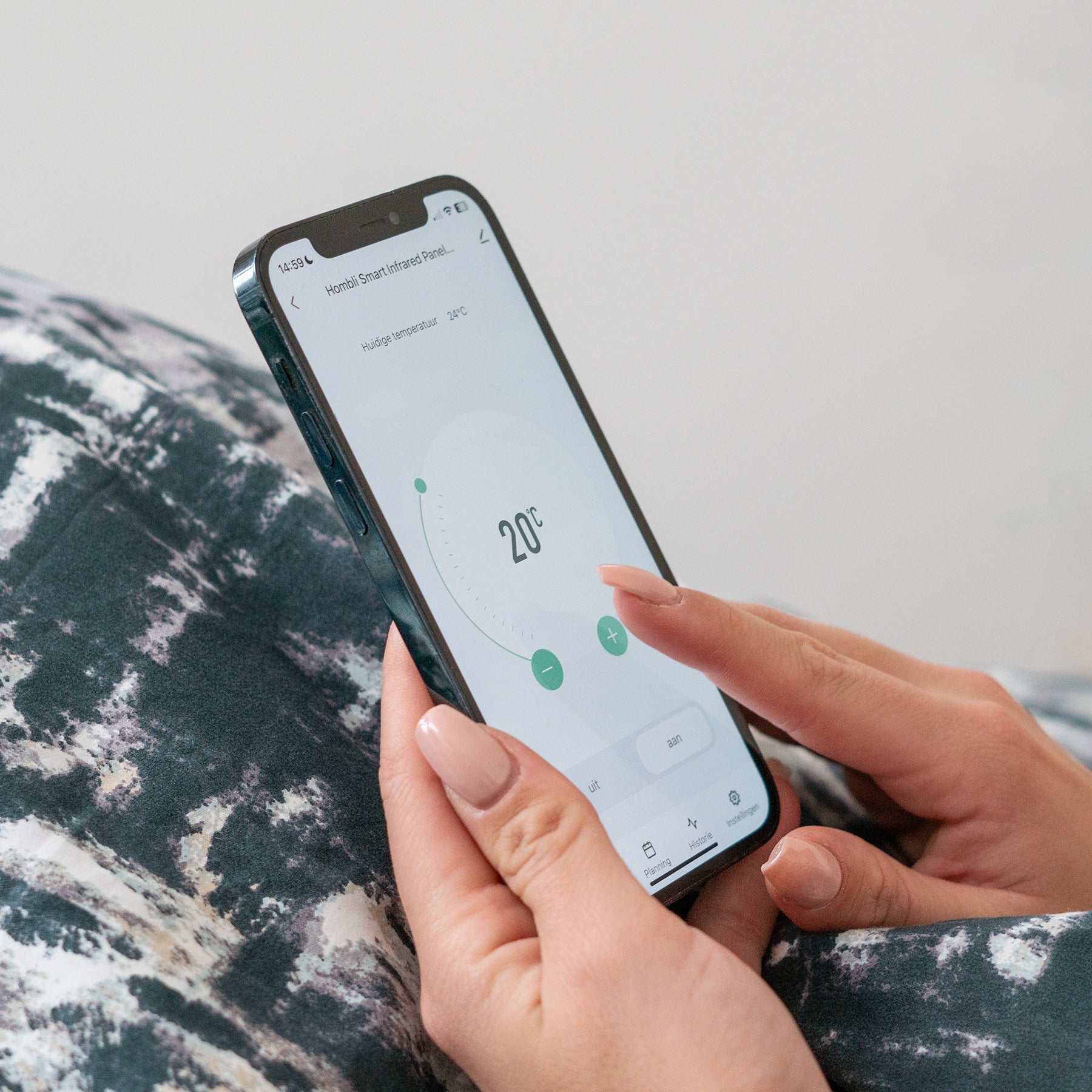 L'installation est simple : branchez le panneau, allumez-le et connectez-le à votre WiFi via l'application Hombli. Avec cette application facile à utiliser, vous pouvez contrôler et programmer le chauffage pour chaque pièce.