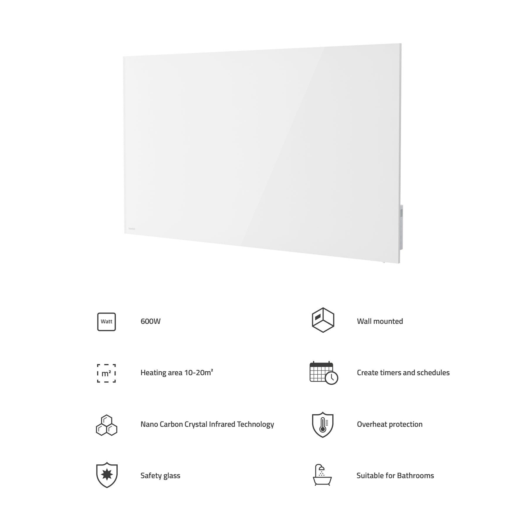 Hombli Smart Infrared Panel Heater - 600W White Glass