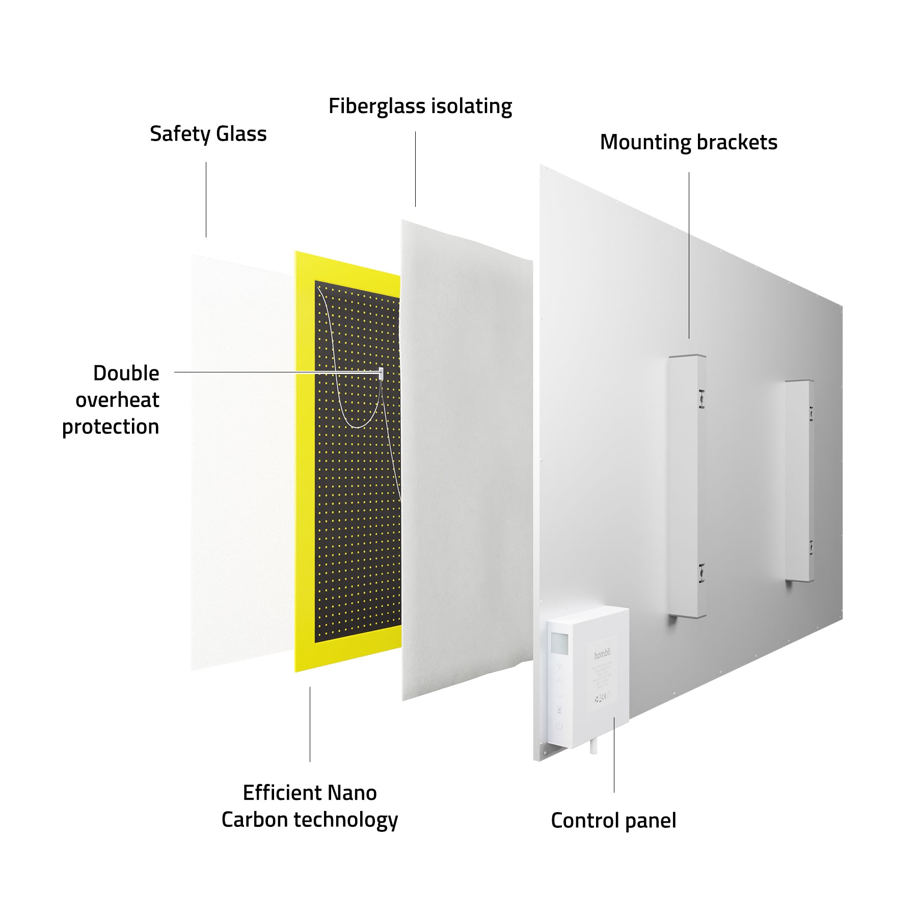 Chaleur, où et quand vous en avez besoin. Avec le Heatpanel, vous pouvez chauffer efficacement des espaces spécifiques sans avoir besoin d'utiliser tout votre système de chauffage central. Ce panneau au design élégant s'intègre parfaitement dans tout intérieur moderne, et l'élément chauffant avec technologie Nano Carbon Crystal Infrared fournit une chaleur instantanée, rendant vos espaces – de la salle de bain au salon – confortables dès que vous entrez.
