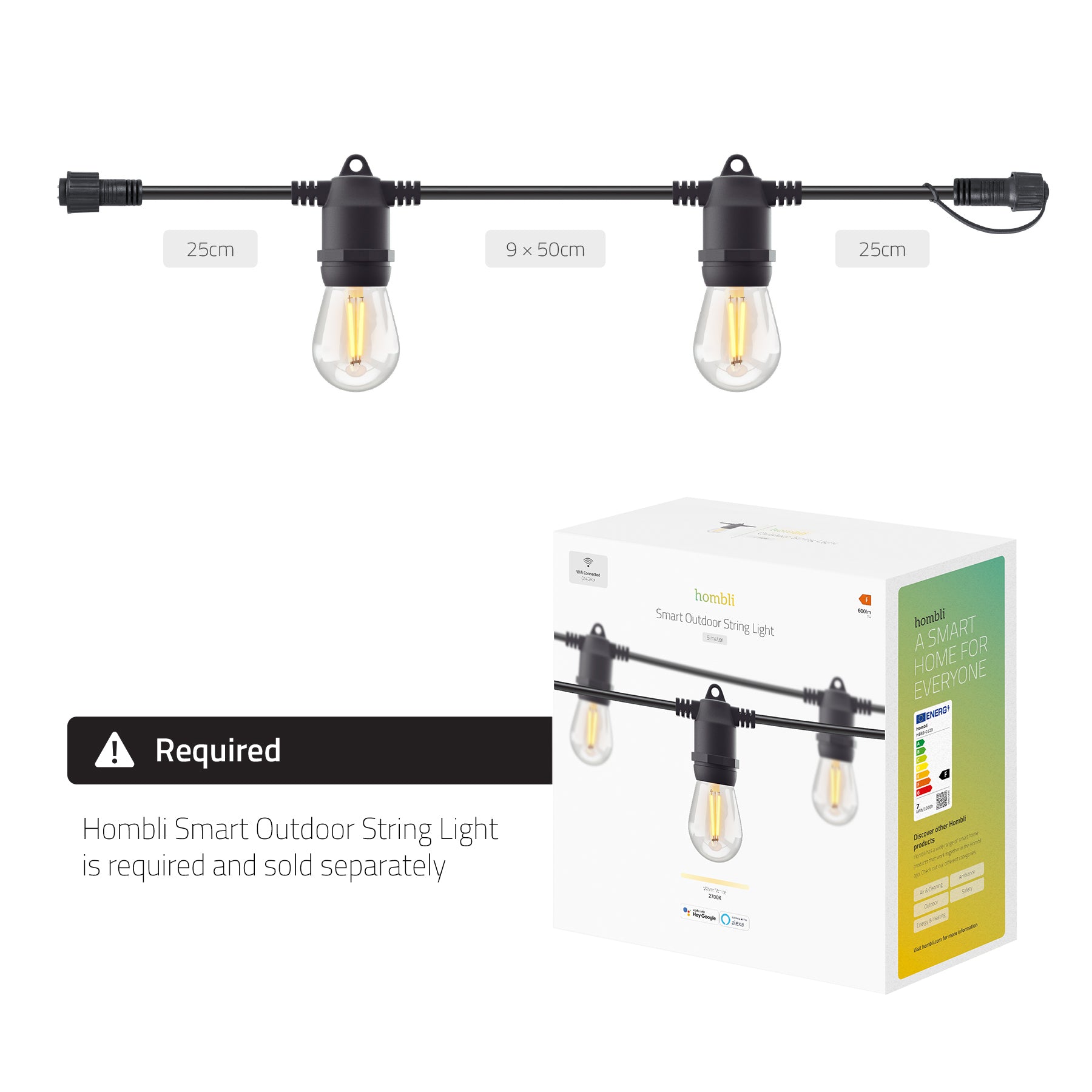 REMARQUE : Ce produit nécessite la Hombli Smart Outdoor String Light.