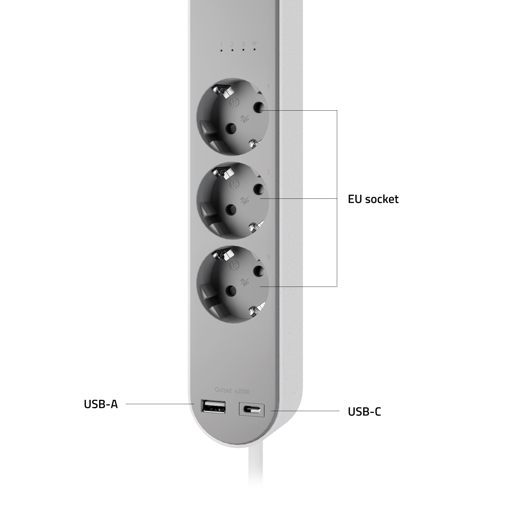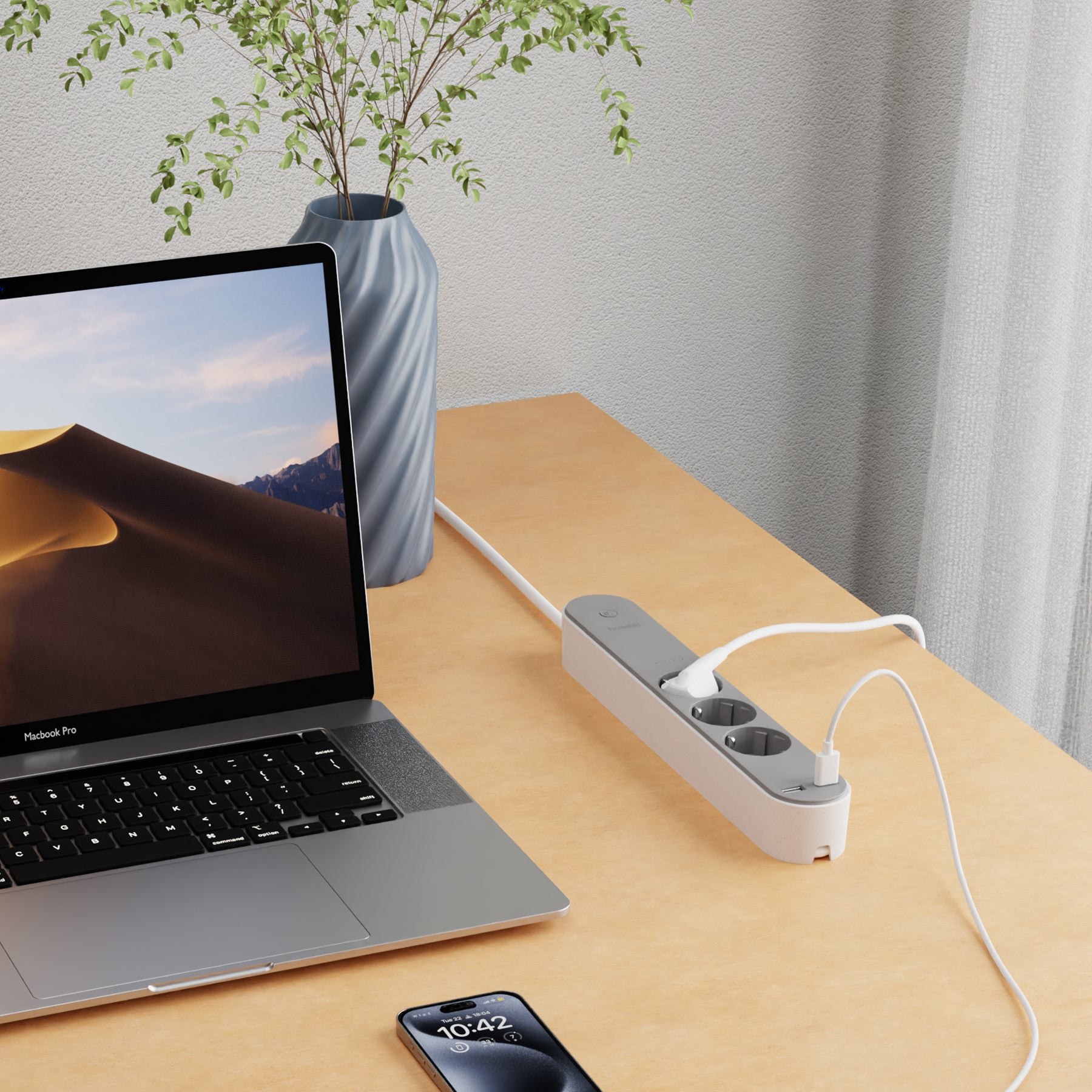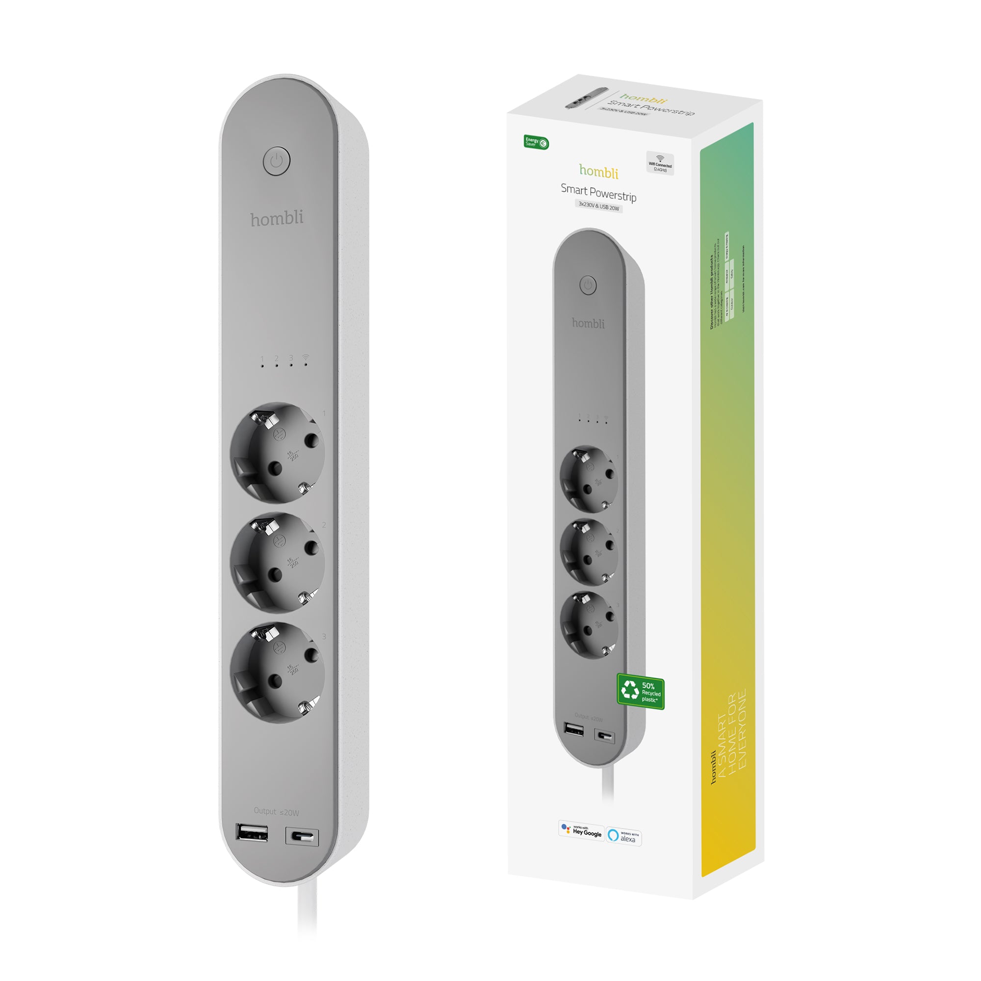 Économisez de l'énergie et transformez des produits démodés en produits intelligents avec cette élégante multiprise. Non seulement vous obtenez trois prises intelligentes, mais la Hombli Smart Powerstrip fait également office d'adaptateur d'alimentation USB-A et USB-C ! Cette multiprise a bien plus à offrir que son apparence élégante ; elle est fabriquée à partir de matériaux recyclés, incarnant une approche responsable et respectueuse de l'environnement qui va au-delà de l'efficacité énergétique.