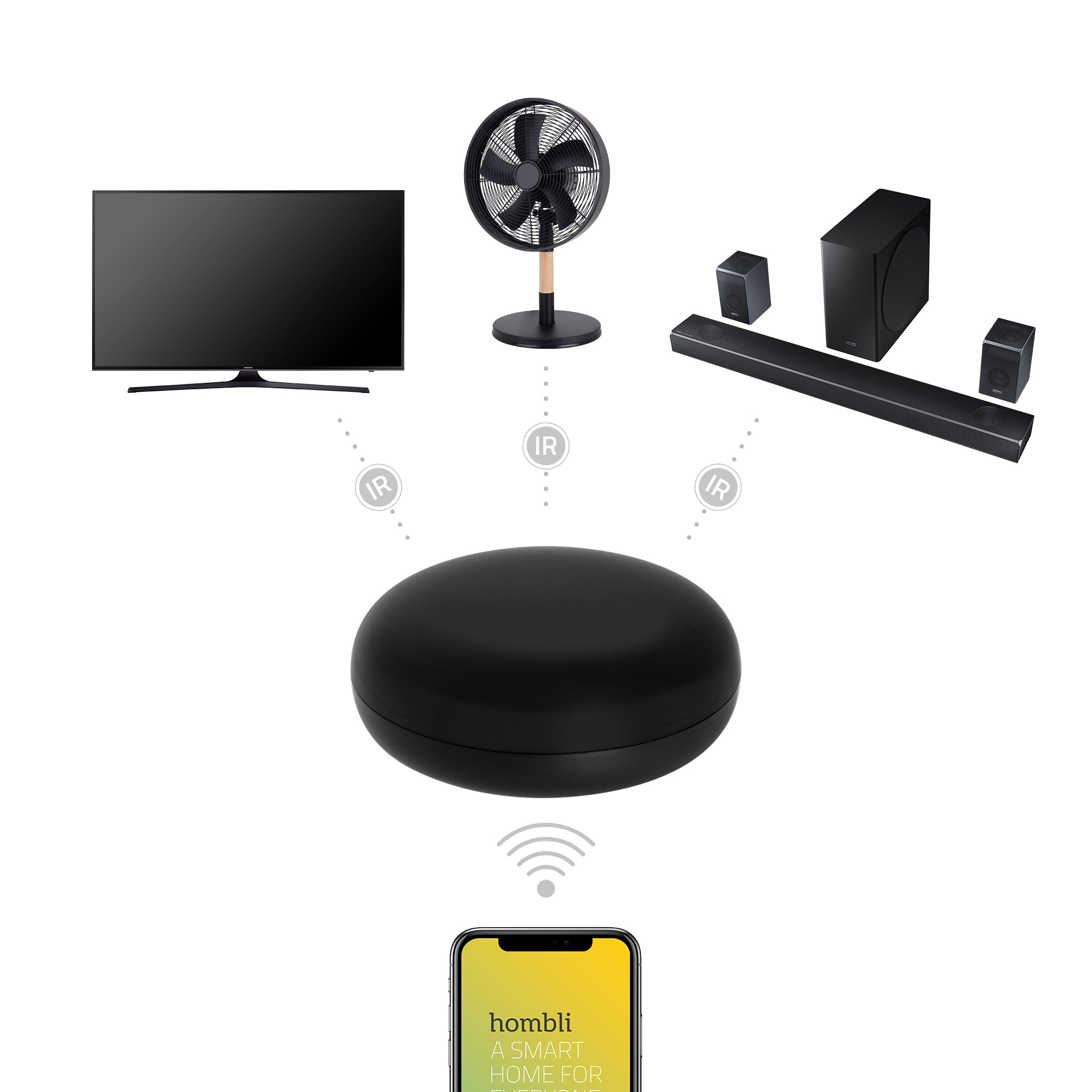 Met de Hombli Smart IR Remote Control bedien je infrarood gestuurde apparaten zoals een TV en home cinema set met je telefoon! Deze slimme universele afstandsbediening vervangt je bestaande afstandsbedieningen en ondersteunt meer dan 80.000 apparaten van bekende merken zoals Sony, Philips en Samsung. Werkt ook met spraakbesturing via een Google Home Mini speaker en Amazon Alexa.