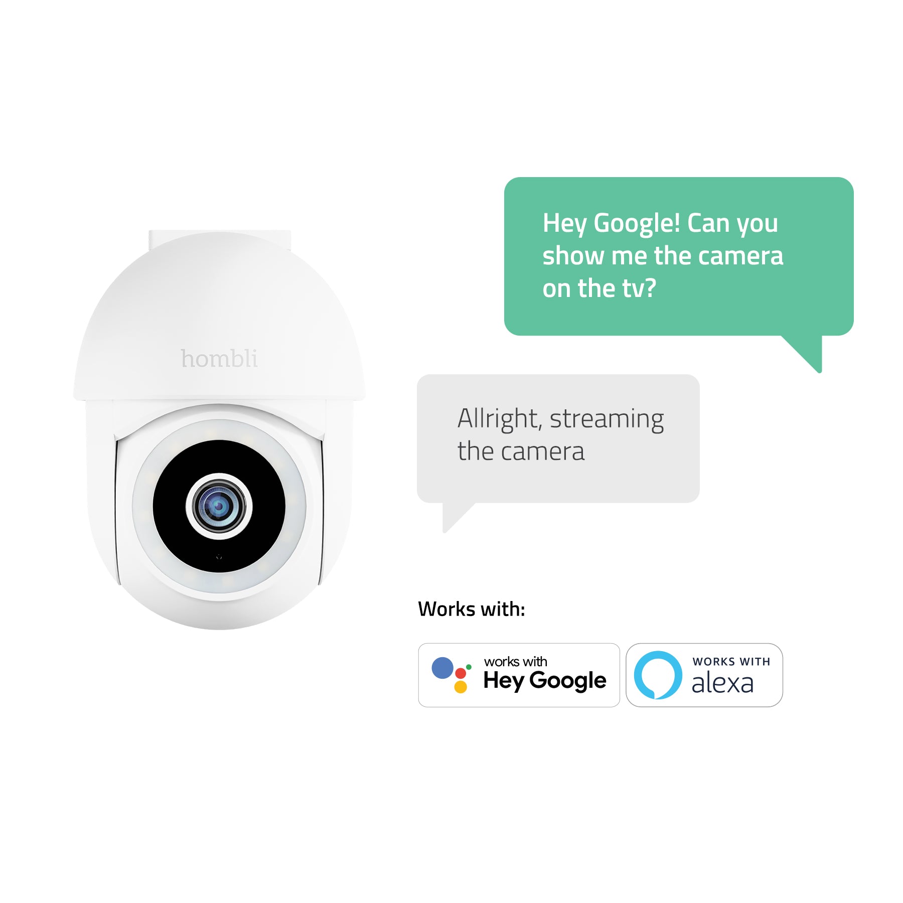 Compatible with Amazon Alexa and Google Assistant, the Hombli Pan & Tilt Cam 2K integrates seamlessly with other smart home systems.